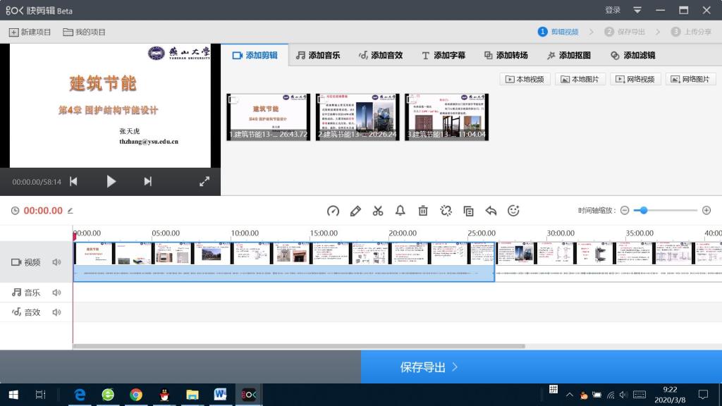 自2月12日起,张老师便开始准备本学期的《建筑节能》线上课程,在超星学习通导师QQ群中了解了线上视频课程的制作方法,并准备了超星在线课程制作系统。考虑在线平台使用量过大,网络不畅的问题,确定采用录播的方式开展本学期的线上教学。
