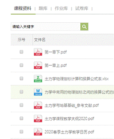 作为专业基础课程,《土力学》课程建设一直是岩土工程教学团队教学改革的试验田。自燕山大学引入学习通平台以来,团队在网络平台上逐步完善了《土力学》线上课程框架(图1),包括课程章节、资料、大纲日历等教学文件。所有内容均面向学生提供线上访问。