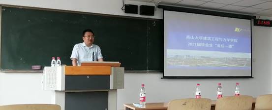 力,筋也。象人筋之形。治功曰力,能圉大灾。凡力之属皆从力。李慧剑老师在工程力学专业“最后一堂课”上主要讲了力学的发展规律和态势与工程的相互关系。通过重温“奶酪”理论,教育引导学生要全面发展,不断完善自己,更好的适应社会需求。最后学生代表为李老师送上鲜花及祝福:“李老师,今天这堂课是我们在燕大求学四年来的最后一堂课,感谢您多年来对大家的传道授业、言传身教,您是我们人生道路上永远的榜样,您的精神会在代代桃李中薪火相传……”。