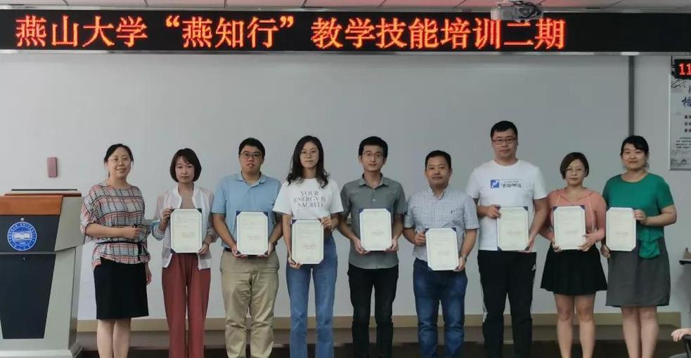 组织的第四届“课程思政”教学竞赛,获得第二名的成绩,在学校“燕知行”教学技能培训中获得“优秀学员”的称号。