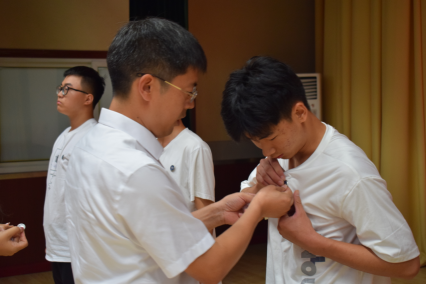 院领导为新生代表佩戴校徽