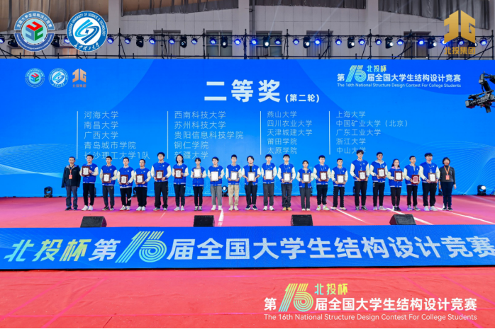 2023年10月25日至29 日,由全国大学生结构设计竞赛委员会主办、长沙理工大学承办的“北投杯”第十六届全国大学生结构设计竞赛在长沙理工大学云塘校区举行。我校参赛队伍与来自清华大学、浙江大学、同济大学等在内的118所高校、119支队伍同场竞技,经过16.5小时的现场模型制作、陈述答辩、现场模型加载后,最终荣获全国二等奖和本届竞赛优秀组织奖,创造了新的辉煌。