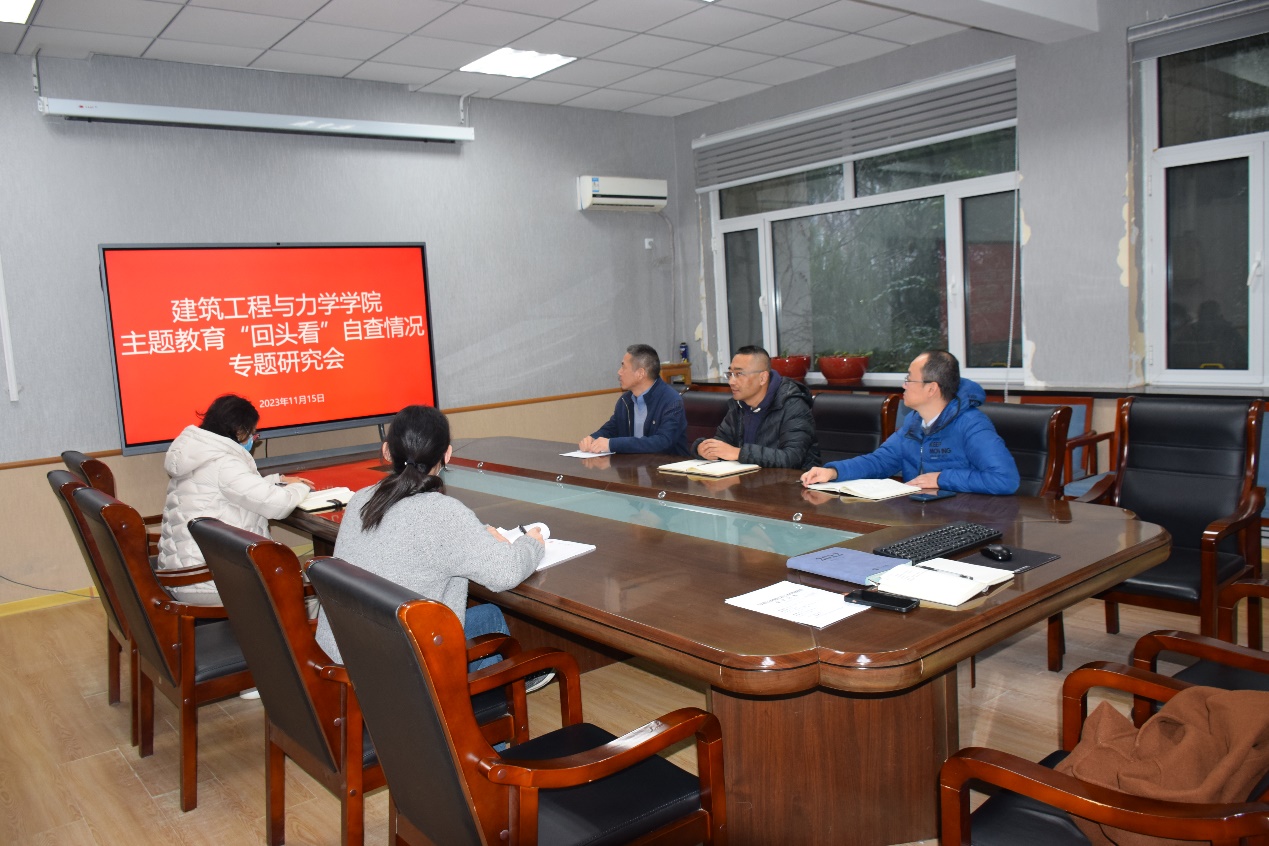 在建筑馆203室召开主题教育“回头看”自查情况专题研究会。网上百家乐