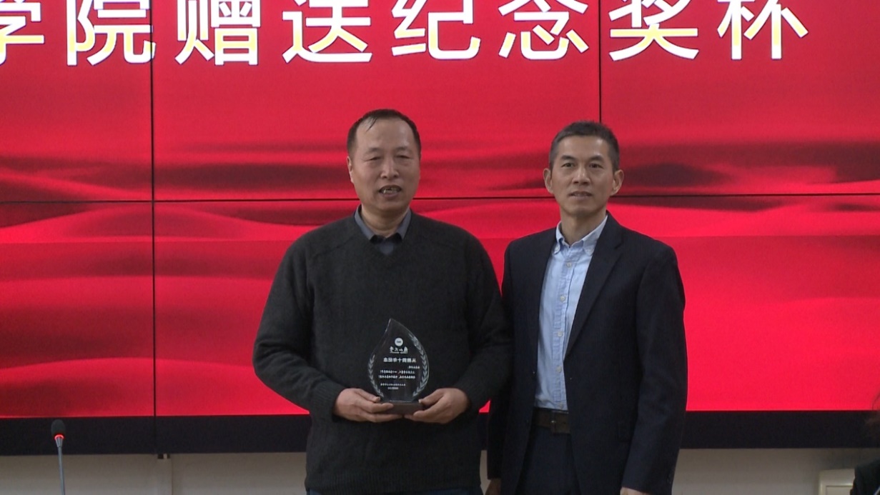 建设与发展做出的卓越贡献,并为两位老师颁发了从教四十年的纪念奖杯。他还对青年教师提出了几点希望:一是学习两位老师的德行气质,学习他们勤学笃行、求是创新的躬耕态度,以及乐教爱生、甘于奉献的精神;二是弘扬教育家精神,践行教书育人使命,接好老教师们教书育人的接力棒;三是认真学习贯彻习近平总书记关于教育的重要讲话精神,将立德树人融入教育过程各环节,做“四有”好老师,当好“四个引路人”,履行好为党育人、为国育才的职责使命。