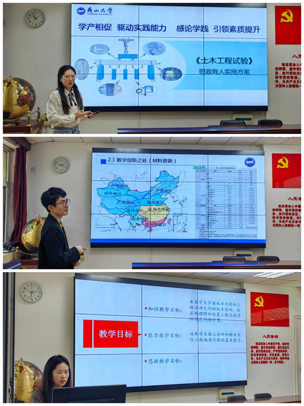 的思政课教师逐一进行了点评、讲解,并提出改进建议。随后,老师们就课程思政教学中的难点——专业知识与思政元素的有效结合进行了深入交流研讨,并达成共识,即课程思政教师应通过对本科生思政课程教材的研读,让课程思政有抓手,并保证思政元素表述的准确性、专业性;要选择本身就有一定倾向性的经典案例,作为课程思政的切入点,让学生体会润物无声的代入感,避免生硬、刻意的思政。