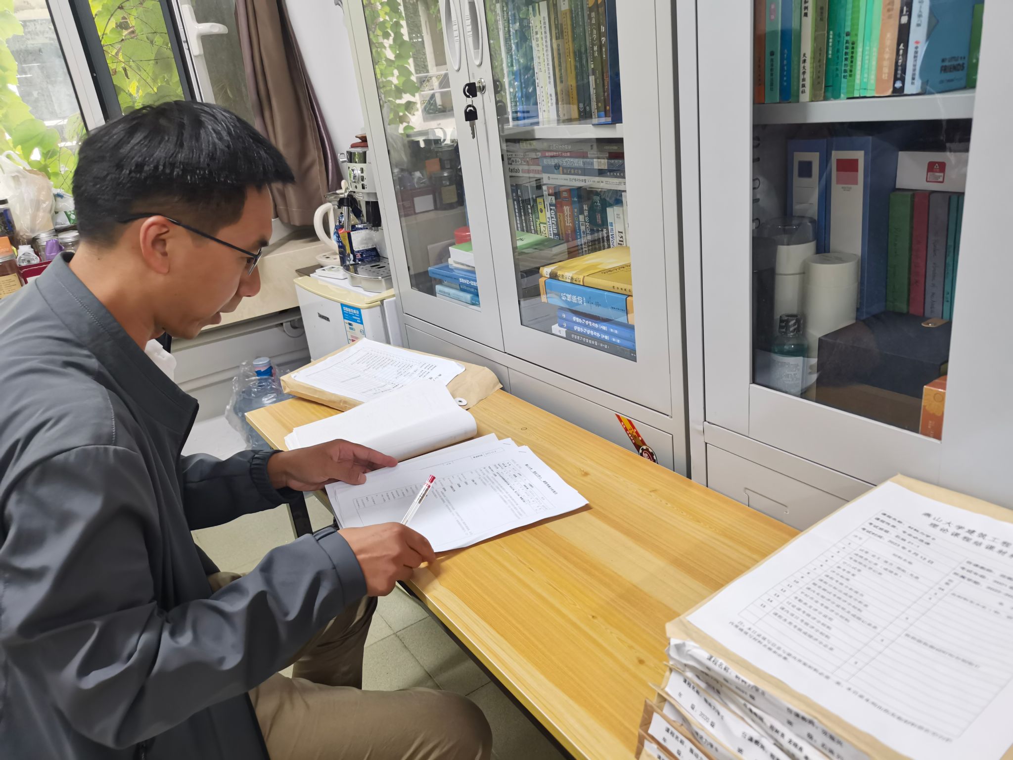 为扎实推进网上百家乐 本科教育教学审核评估整改工作,做好专家进校审核评估工作,2024年9月20日下午,工程力学系主任梁希、副主任郝颖、教师代表余为到网上百家乐 档案室集中抽查部分教师、部分课程的考试归档材料。