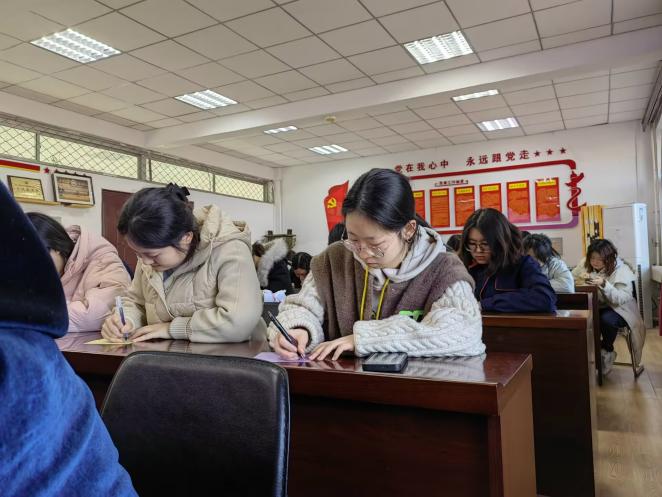 张娟娟首先向全体女生送去美好的祝福,鼓励同学们要自信自强,在青春的舞台上绽放属于自己的光彩。张老师她通过“我的大学我做主”的互动分享,结合自身的成长经历与心路历程,共同探讨了“女生们”的大学生活规划与时间管理经验,内容涵盖学习、社团、实习、个人兴趣等方面。通过“探索你的无限可能”互动小测试,帮助女生了解自身兴趣与优势,引导她们制定大学生活规划,明确发展方向。最后,活动以“写给未来自己的一封信”作为结束,这些信件不仅是对未来的期许,更是对当下努力的承诺。她们同学们在信中表达了对未来的美好憧憬,写下了自己的目标和梦想。这些信件将被妥善保管,待次年女生节再未来开启时,必将成为她们青春岁月的美好回忆。