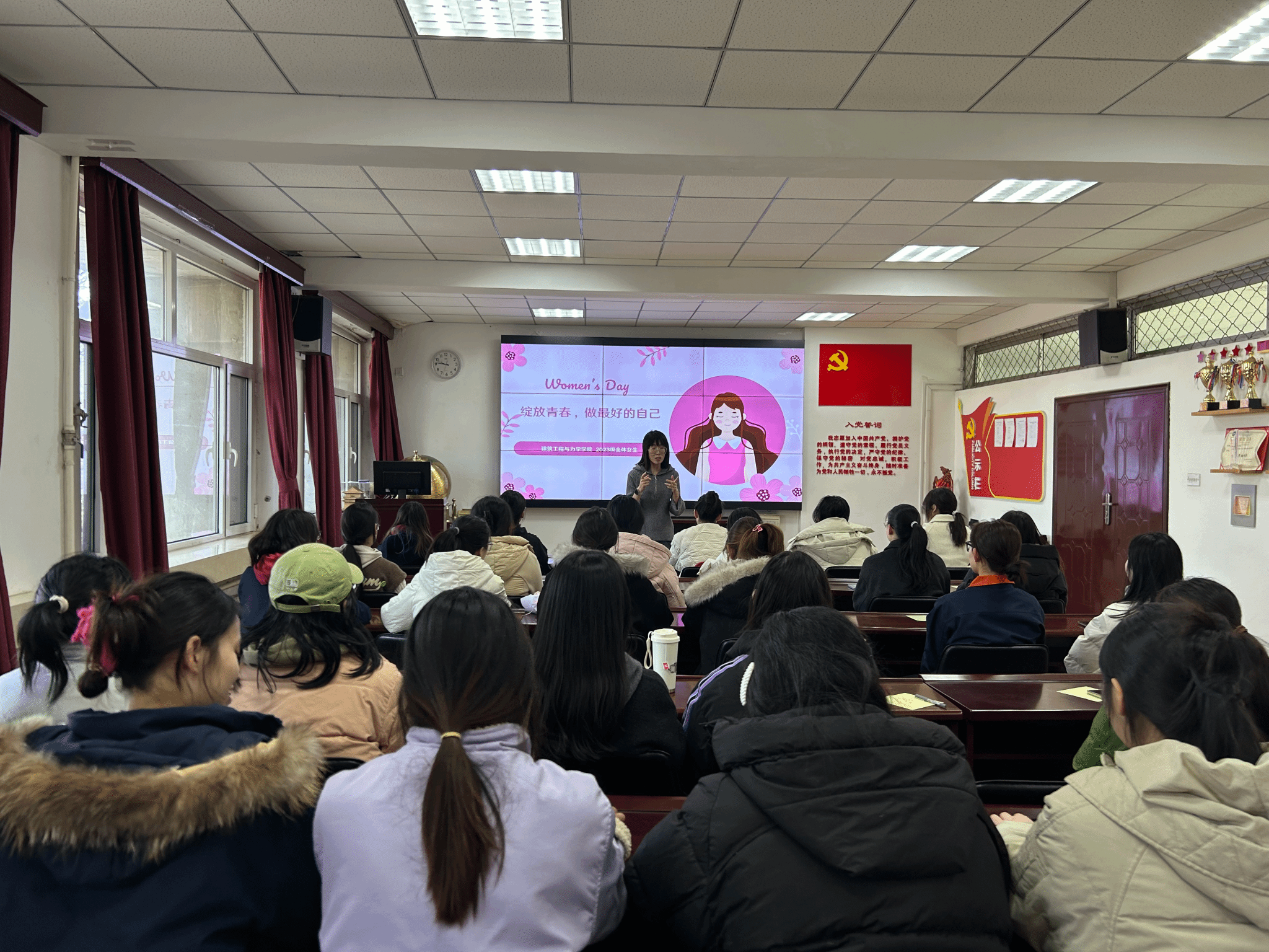 2023级在建筑馆211室举办了以“绽放青春,做最好的自己”为主题的职业生涯规划教育活动。辅导员张娟娟老师以及2023级本科35名女生参与此次活动。