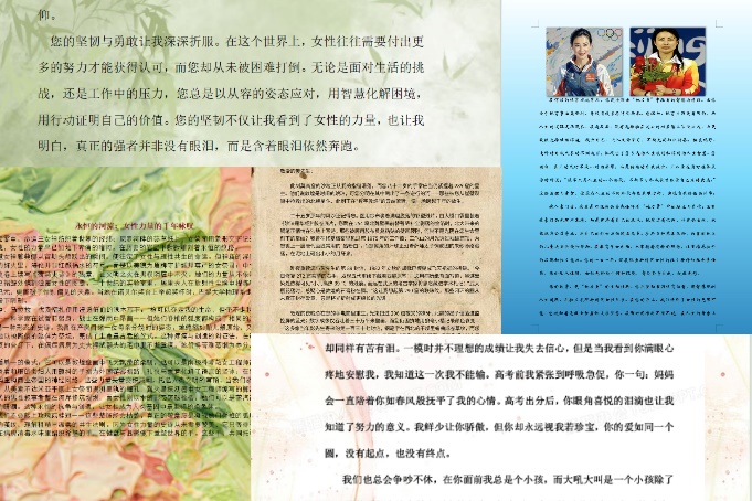 “写给我敬佩的女性”书信活动作为本次系列活动的开篇之作,受到了同学们的热烈响应。大家通过书信的形式,表达了对古今中外杰出女性的敬意与赞美。从古代的花木兰到现代的屠呦呦,从文学领域的冰心到科技前沿的张弥曼,她们的故事在同学们的笔下被重新诠释。书信活动不仅深化了同学们对性别平等的认识,更营造了尊重女性、理解女性的校园文化氛围。