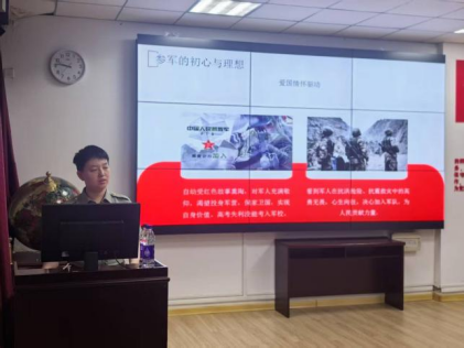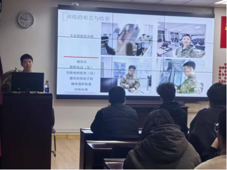 蒋雅楠同学以“青春铸剑守边疆”为主题,结合自身经历,从“参军初心”“军旅成长”“使命担当”三个维度,为大家分享了从校园学子到戍边军人的蜕变历程。她详细介绍了大学生应征入伍的政策流程,并结合自身在部队担任通信兵的经历,重点讲解了军事专业技能培养、部队日常训练及实战化任务执行情况。