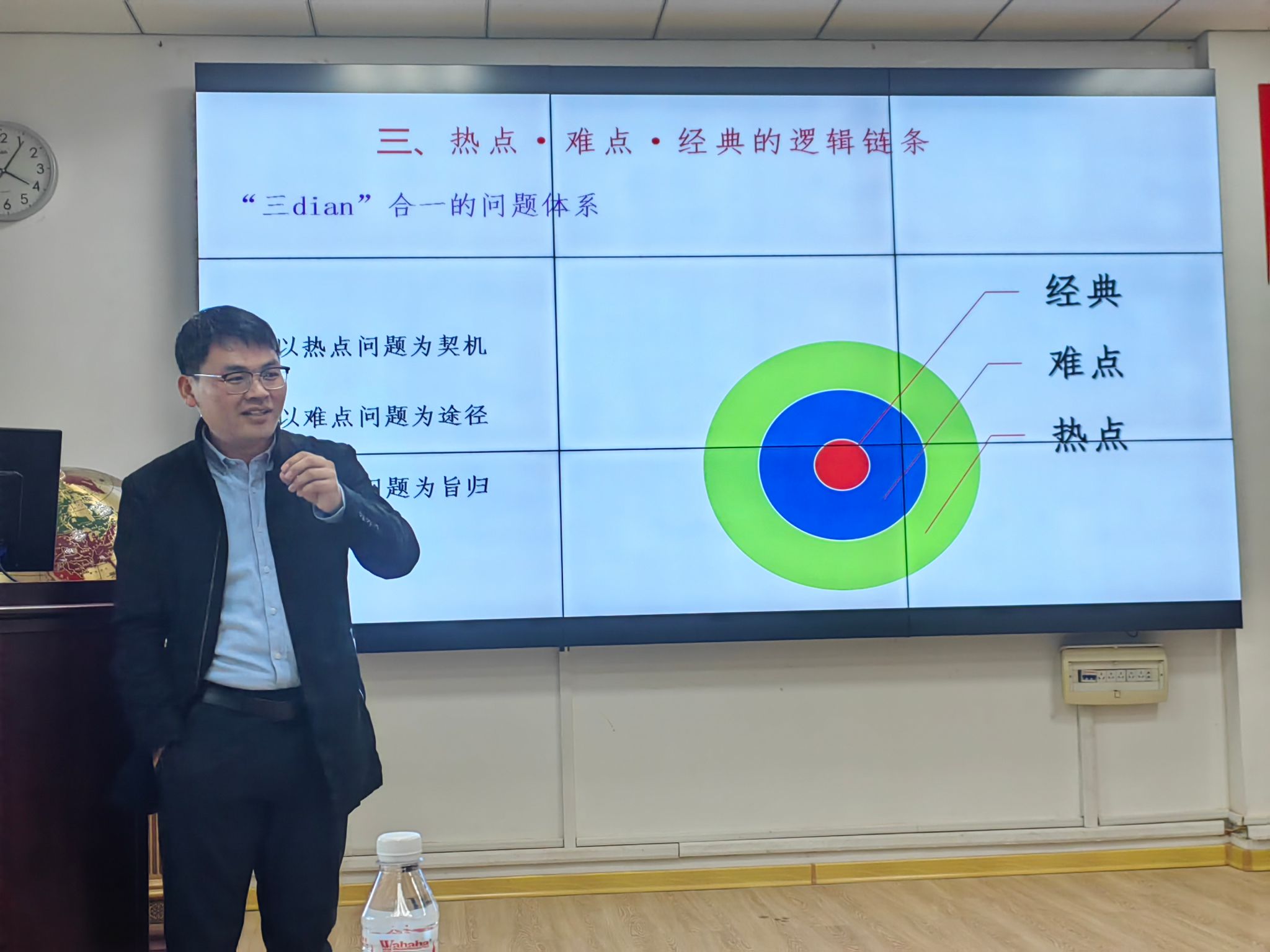杨新宾教授,为全院教师作题为《思政课讲授的链条与方法——以“思想道德与法治”课程为例》的主题讲座。本次讲座聚焦思政课教学改革与专业课程育人功能的有机衔接,旨在探索全员全程全方位育人新路径。