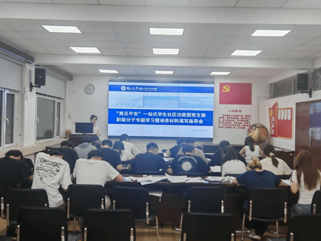 为深入推进学生党建工作与思想政治教育深度融合,加强对入党积极分子的培养和教育,9月3日晚,“寓见平安”一站式学生社区功能型党支部于建筑馆211教室组织面向2024级本科入党积极分子的专题学习培训活动。本次活动由辅导员邓闰芳主持。