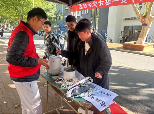 活动期间违禁物品实物展严肃、直观地敲醒安全警钟。展区内,违规电器、明火器具、管制刀具等学生公寓常见违禁物品被分类陈列,每类物品旁都配有图文警示卡。鲜活的案例与触目惊心的实物,让参观学生切实认识到“安全隐患就在身边”。