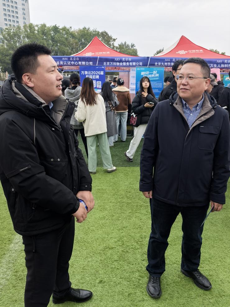 王继东在展位前关注学生与用人单位沟通情况