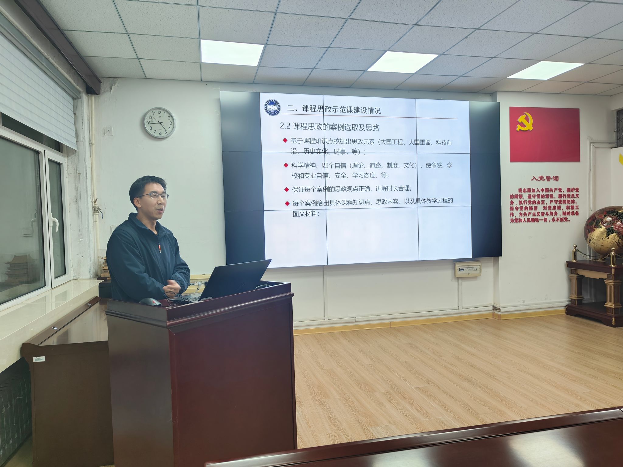 工程力学系郝颖分享了“围绕课程教学团队与教研机制建设”,阐述了如何通过集体备课、专题研讨实现思政元素的精准挖掘,将价值塑造有机融入知识传授与能力培养,实现思政教育与理论力学教学的同向同行。同时分享了基于“新工科”理念和“两性一度”要求的理论力学课程思政总体设计方案及课程思政示范课程的建设成果与持续建设计划。