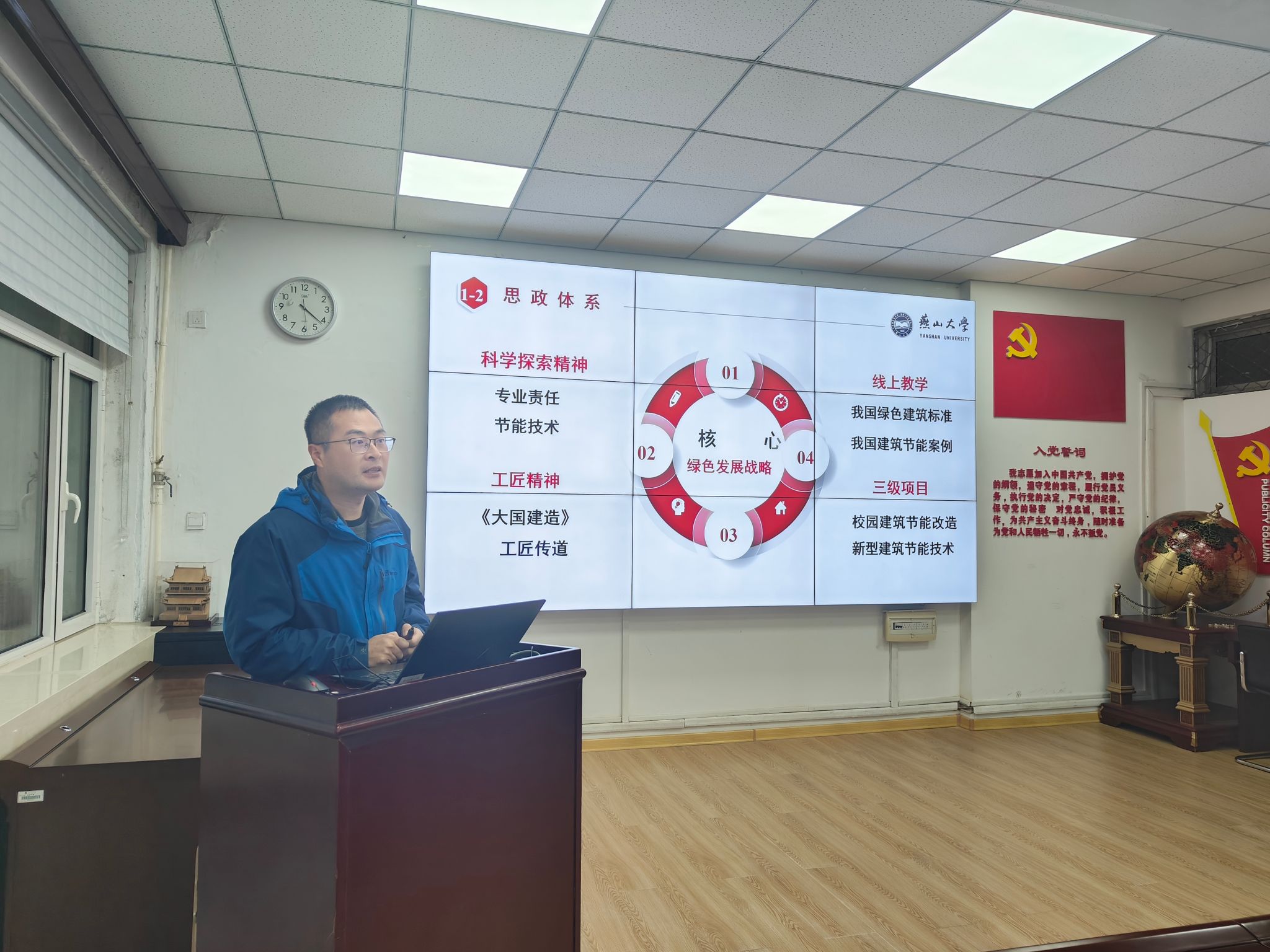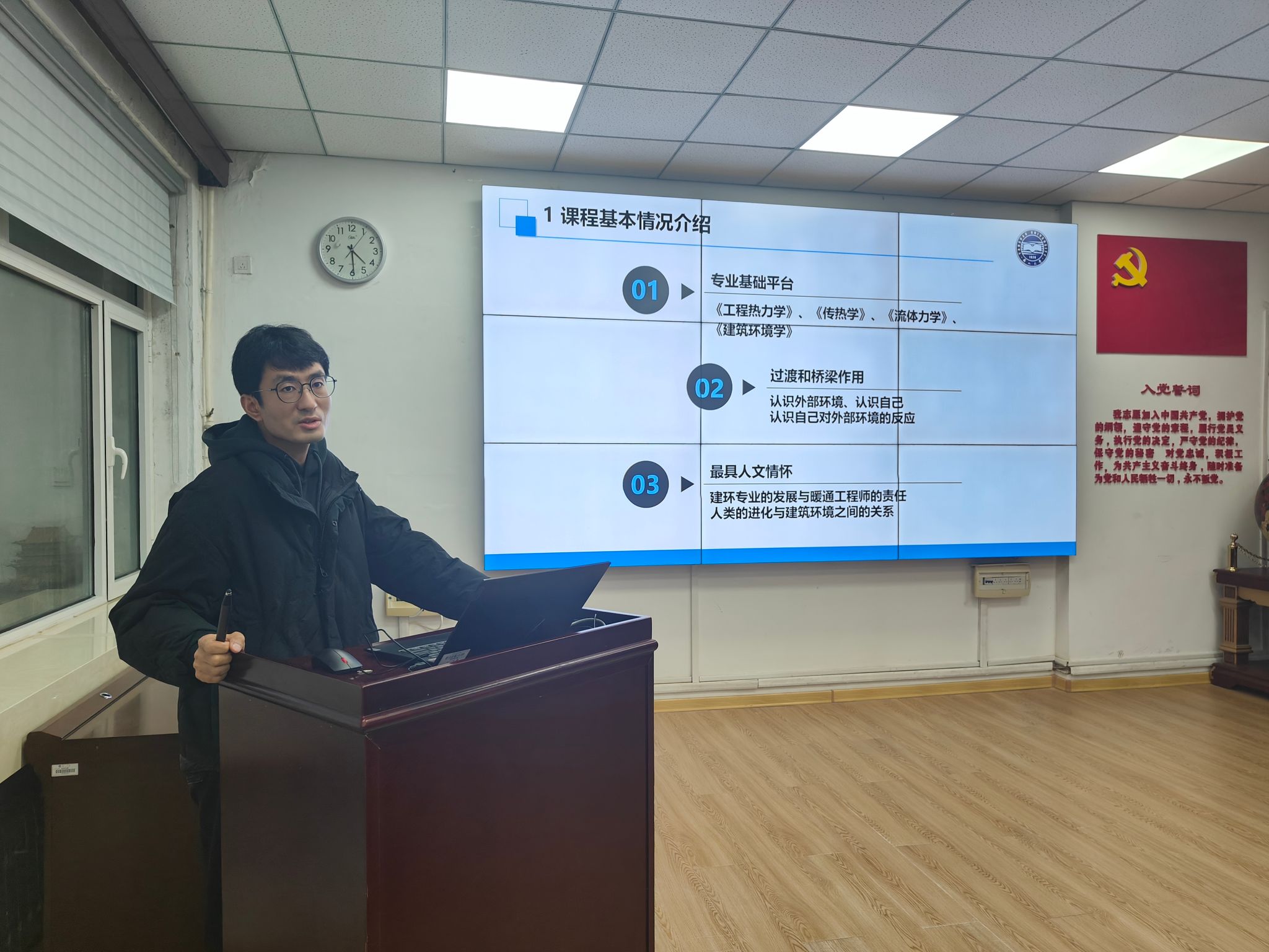 建筑环境与能源应用工程系杨昆(胡建军团队)分享的“建筑环境学”课程思政围绕“人文情怀”与“绿色责任”展开。通过讲解健康人居、绿色建筑等典型案例,引导学生深刻理解“以人为本”的设计初心与“可持续发展”的国家战略,培养其精益求精的工匠精神、心系生态文明的行业责任感,以及为提升人民福祉、建设美丽中国而奋斗的使命担当。