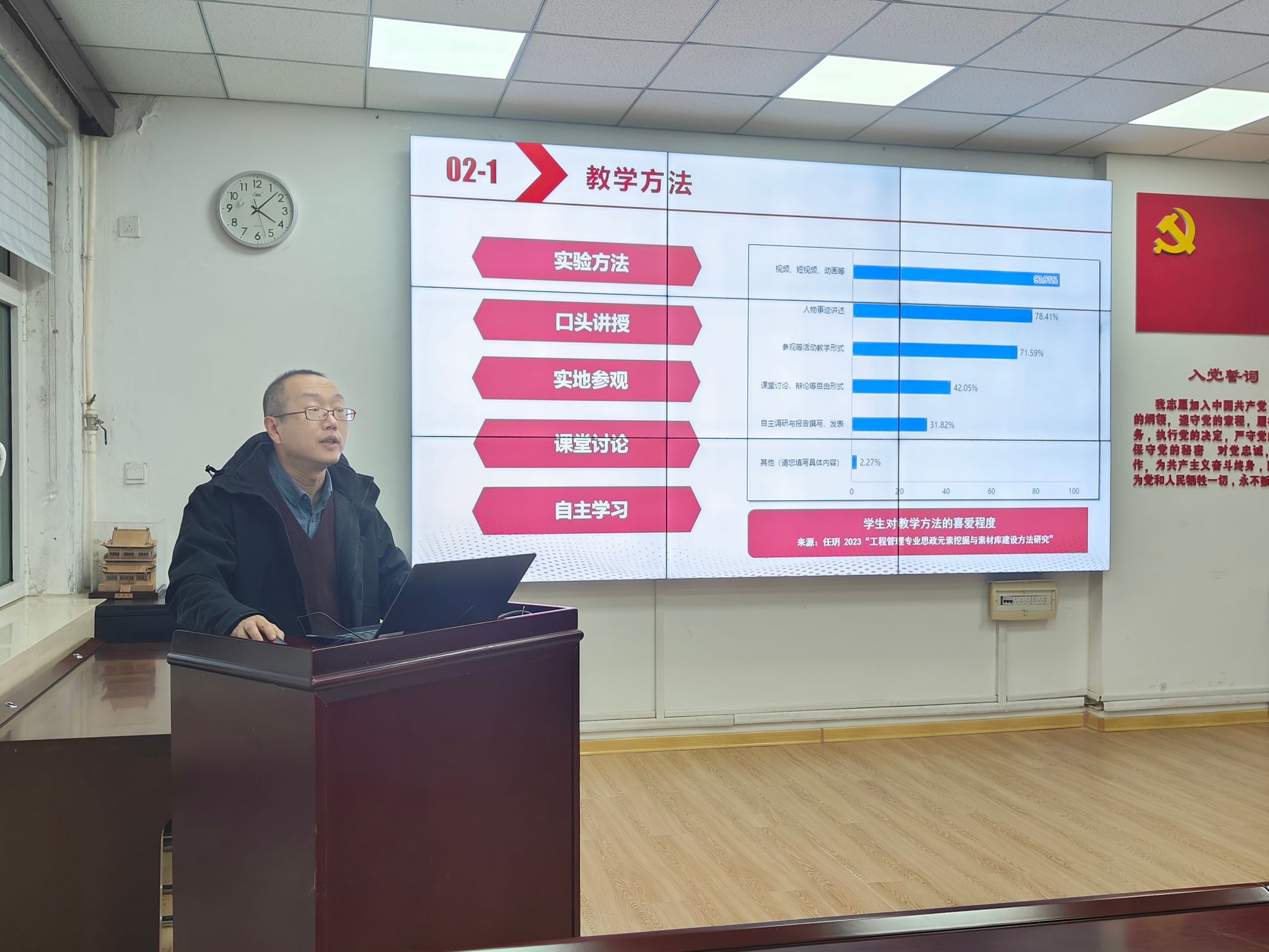 土木工程系吴吉贤分享的“土木工程测量”课程思政围绕“专业认同”与“实践育人”展开。依托课程典型案例讲解和专业实践教学,深化学生对专业的热爱,引导学生实干中强健体魄、锤炼毅力,培养具备扎实学识、身心健康和顽强意志的新时代创新型专技人才。
