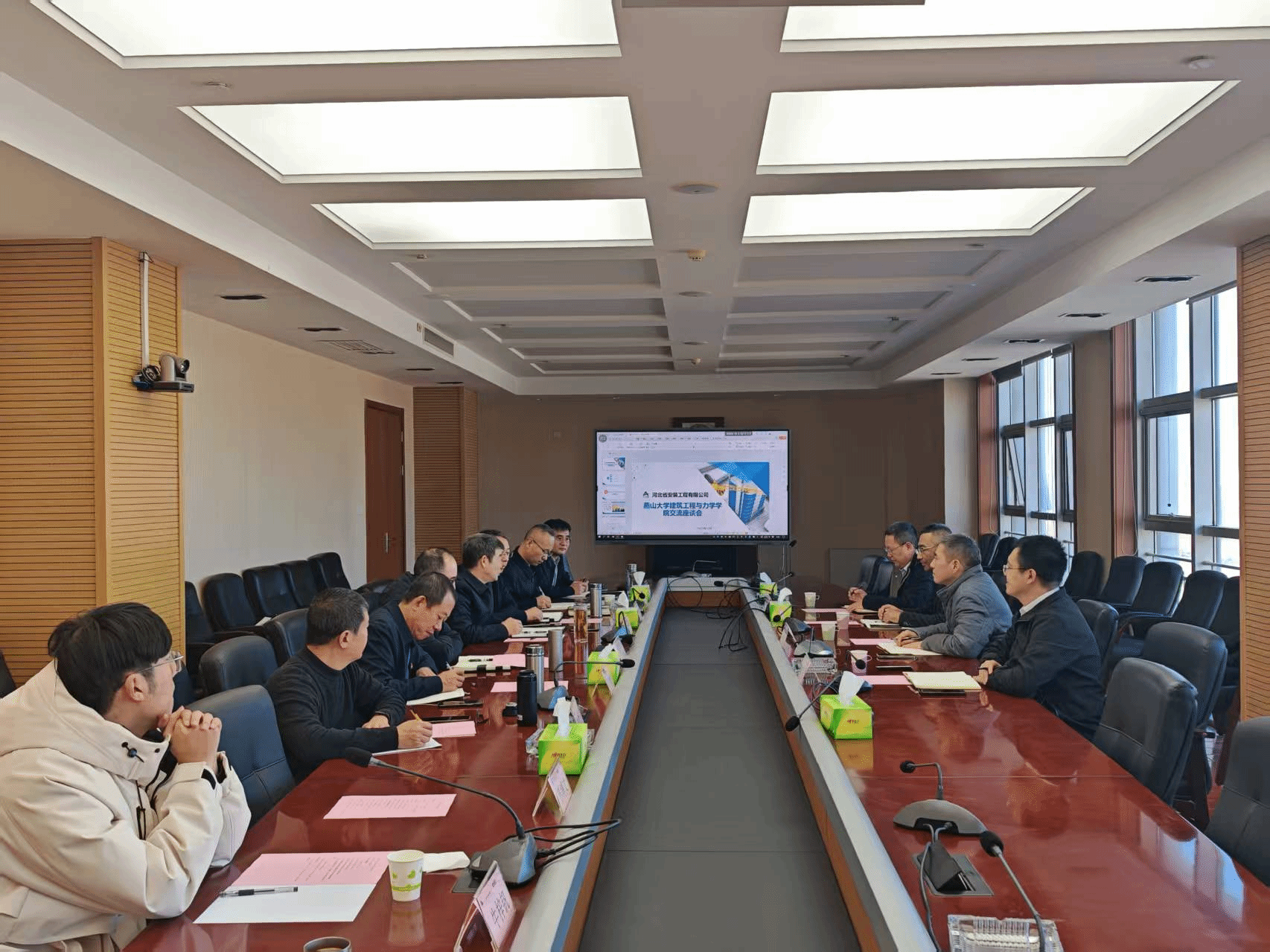 河北省第四建筑工程有限公司党委书记、董事长董富强向院领导一行表达了对我校毕业生在公司展现出的专业素养表示充分肯定,他表示,随着高质量发展步伐加快,公司对高层次人才的需求日益增长。副总经理刘金河向郝圣旺一行介绍了公司的发展历程,在科研创新、质量创优方面取得的成果,人才招聘计划以及人才培养体系,表达了与我校携手开展技术合作、助力产业升级,并为学生提供更广阔的实践与发展平台的意愿。